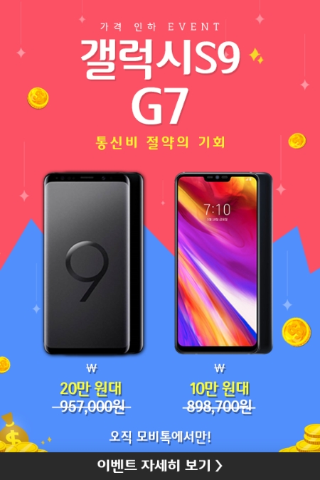 이슈 갤럭시s9 20만 원대 G7 10만 원대 모비톡 프리미엄폰 가격 인하