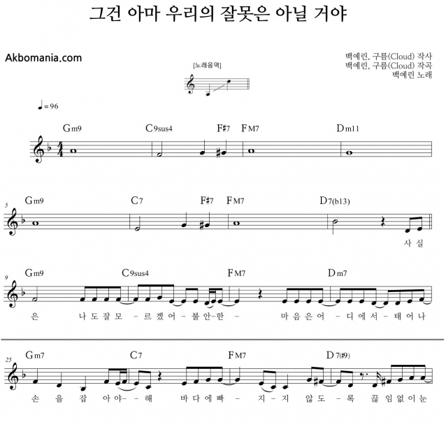 백예린 그건 아마 우리의 잘못은 아닐거야 악보 코드악보 기타악보 초보악보 네이버 블로그