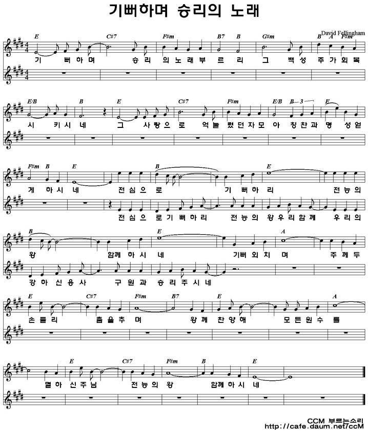 Ccm악보 기뻐하며 승리의 노래 부르리 David Fellingham 어노인팅 2집 E키 네이버 블로그