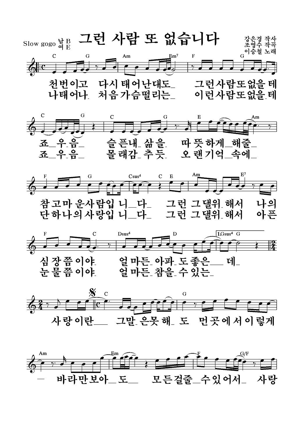 이승철 그런 사람 또 없습니다 C키 악보 악보가게