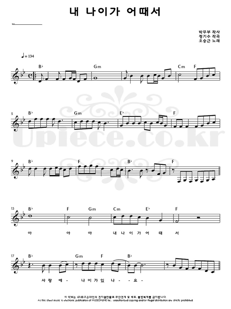 오승근 내 나이가 어때서 악보 Mr Youtube
