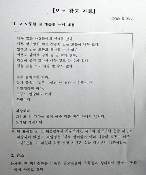 노무현 前대통령 유서 全文