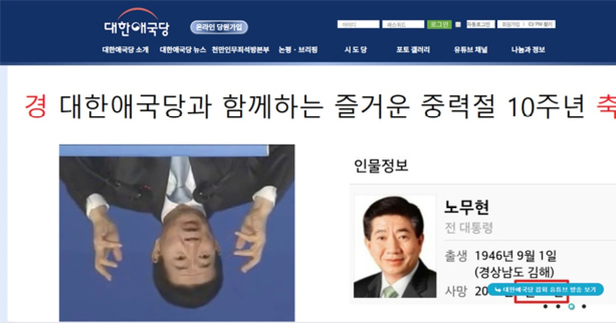 대한애국당 공식 홈피에 노 전 대통령 서거 10주기 조롱 사진 Daum 뉴스