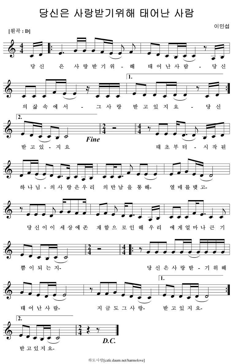 당신은 사랑 받기 위해 태어난 사람 악보 복음성가 음악
