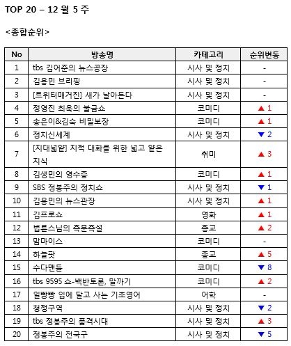 주간팟캐 12월5주 정영진 최욱 송은이 김숙 5위권 진입 성공 가상화폐를 논하다 순위 급상승