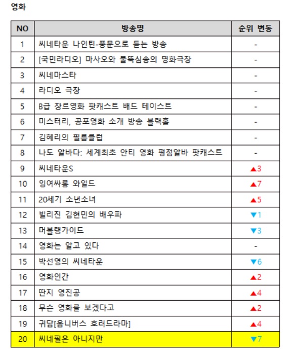 라디오 청취율 순위 2020년 1라운드 업데이트