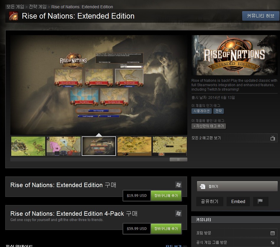 라이즈 오브 네이션즈 스팀판 Rise Of Nations Extended Edition 한글패치 17 09 23 수정