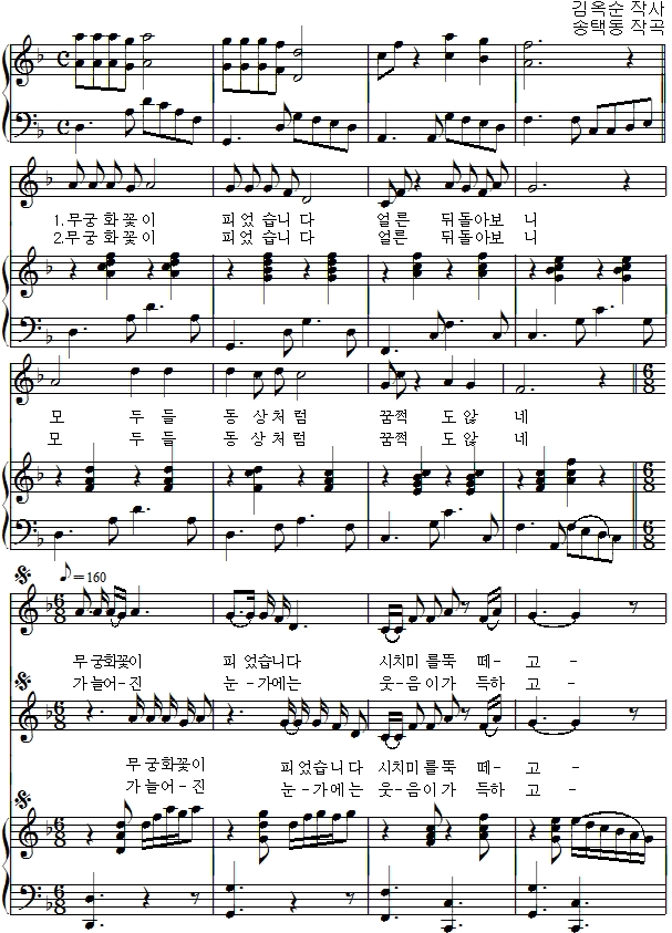 악보 게시판 우울한 두부 무궁화 꽃이 피었습니다 뉴에이지