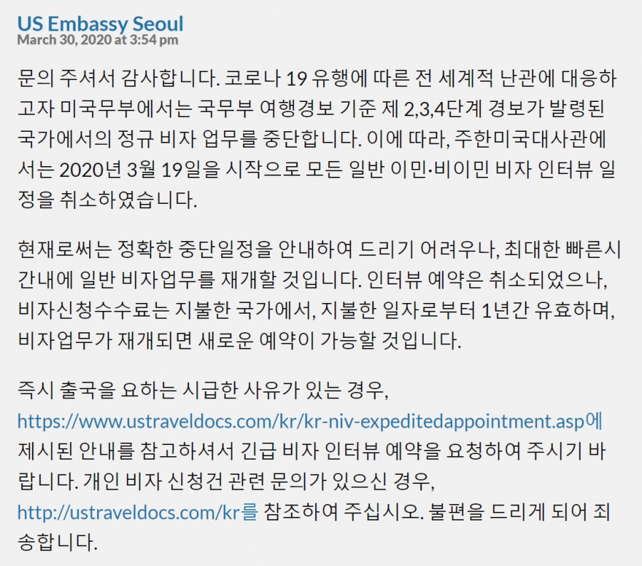 미국비자인터뷰 중단사태 도대체 언제 재개될까요 네이버 블로그