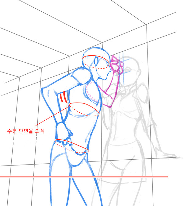 벽에 기댄 포즈 그리기