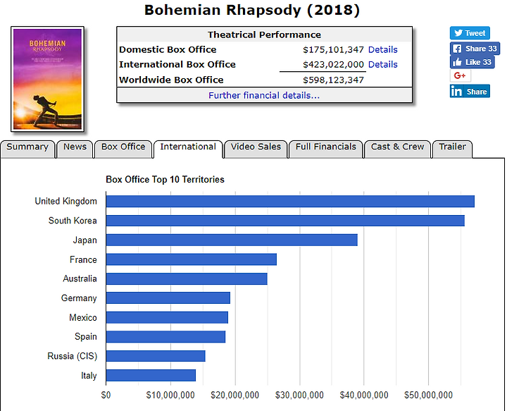 보헤미안 랩소디 700만 관객 고지도 넘었다