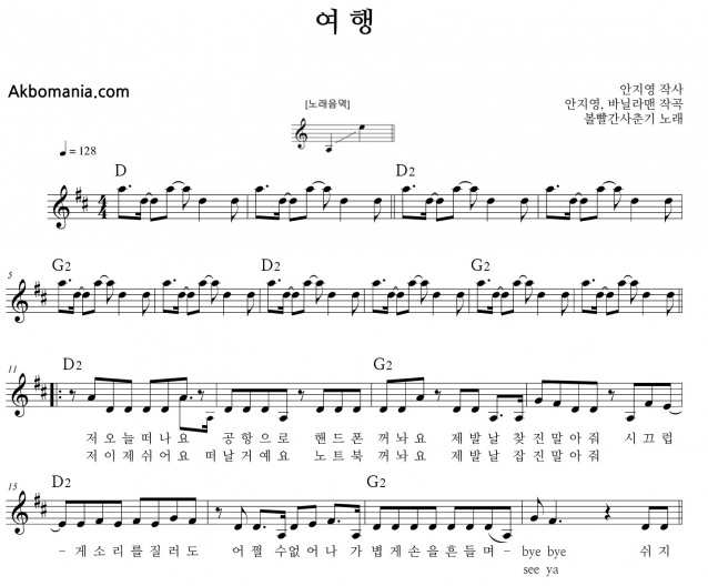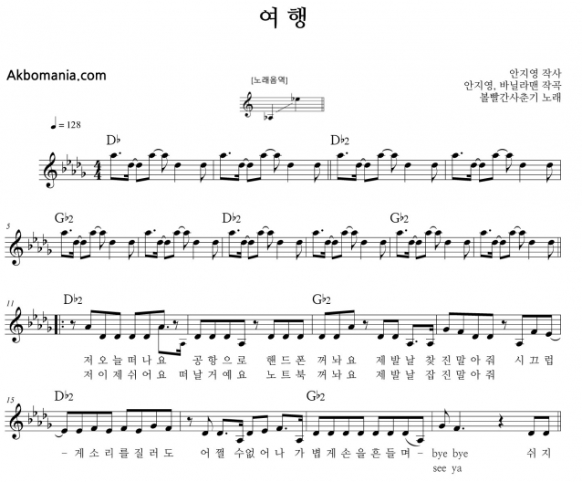 볼빨간사춘기 여행 동영상 악보 악보바다