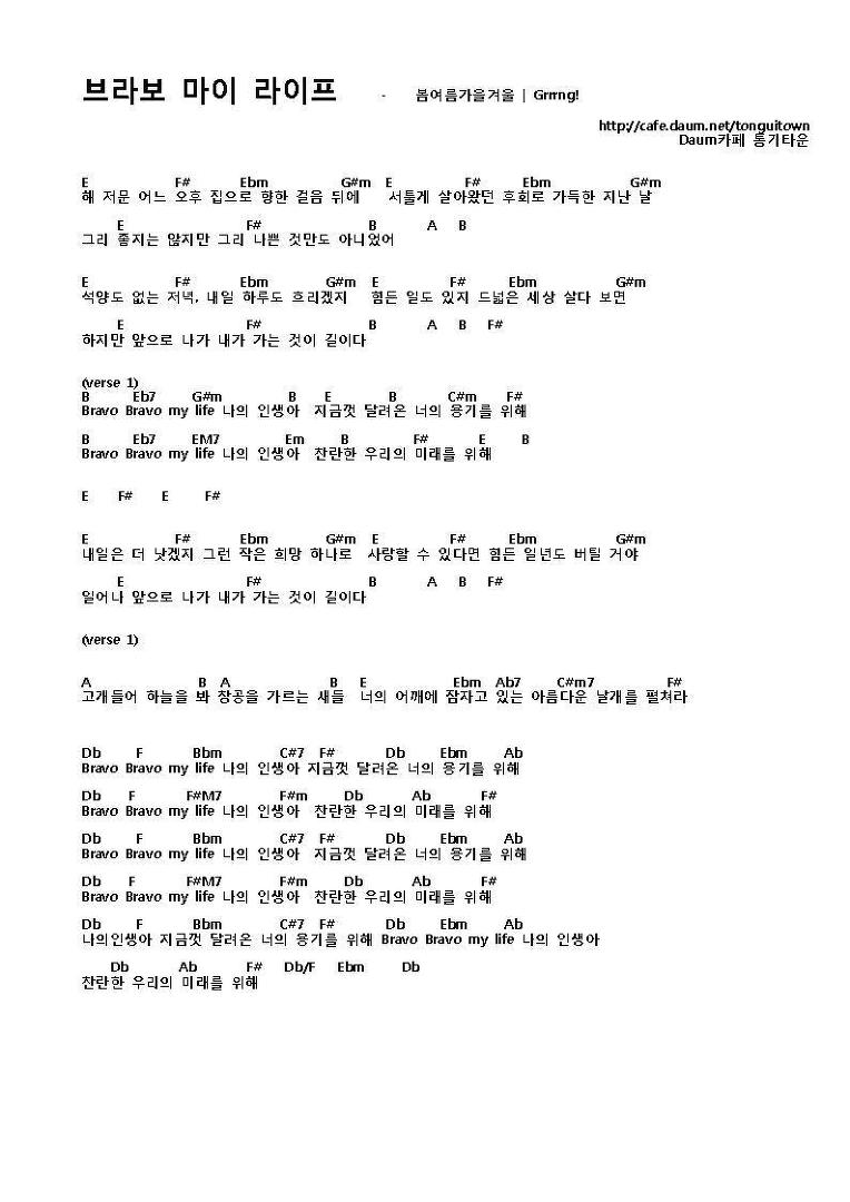 Bravo My Life 봄여름가을겨울 Feat 악보 가사 디아로그캠프 디아블로2