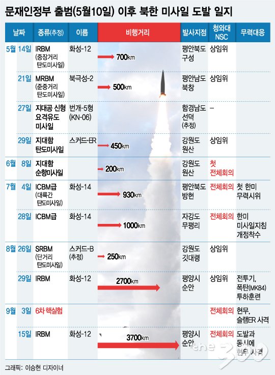 그래픽뉴스 문재인정부 북한 미사일 일지
