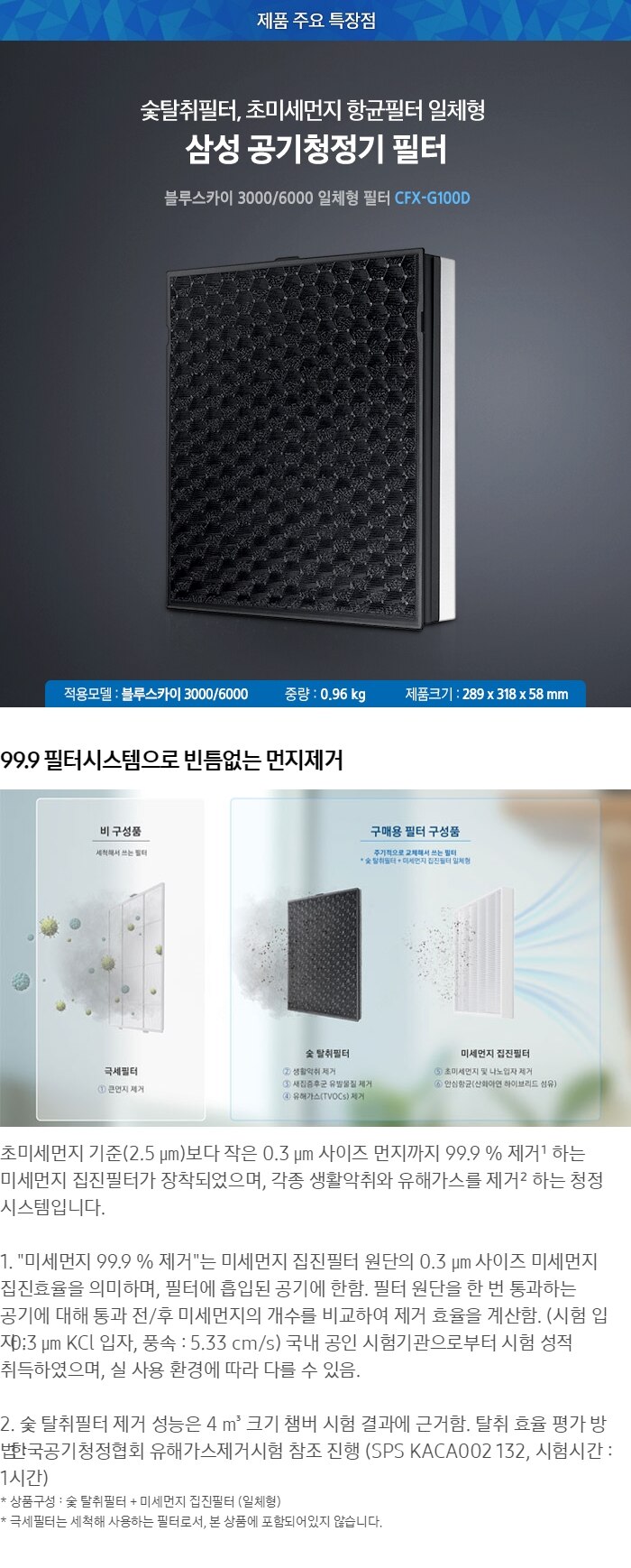 삼성 공기청정기 블루스카이 3000 6000 필터 Cfx G100d 코스트코 코리아