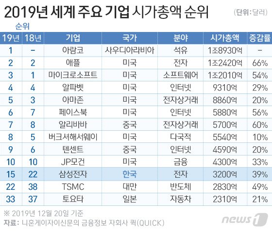 삼성전자 기업가치 세계 18위 1위는 사우디아라비아 아람코 디지틀조선일보 디조닷컴 Dizzo Com