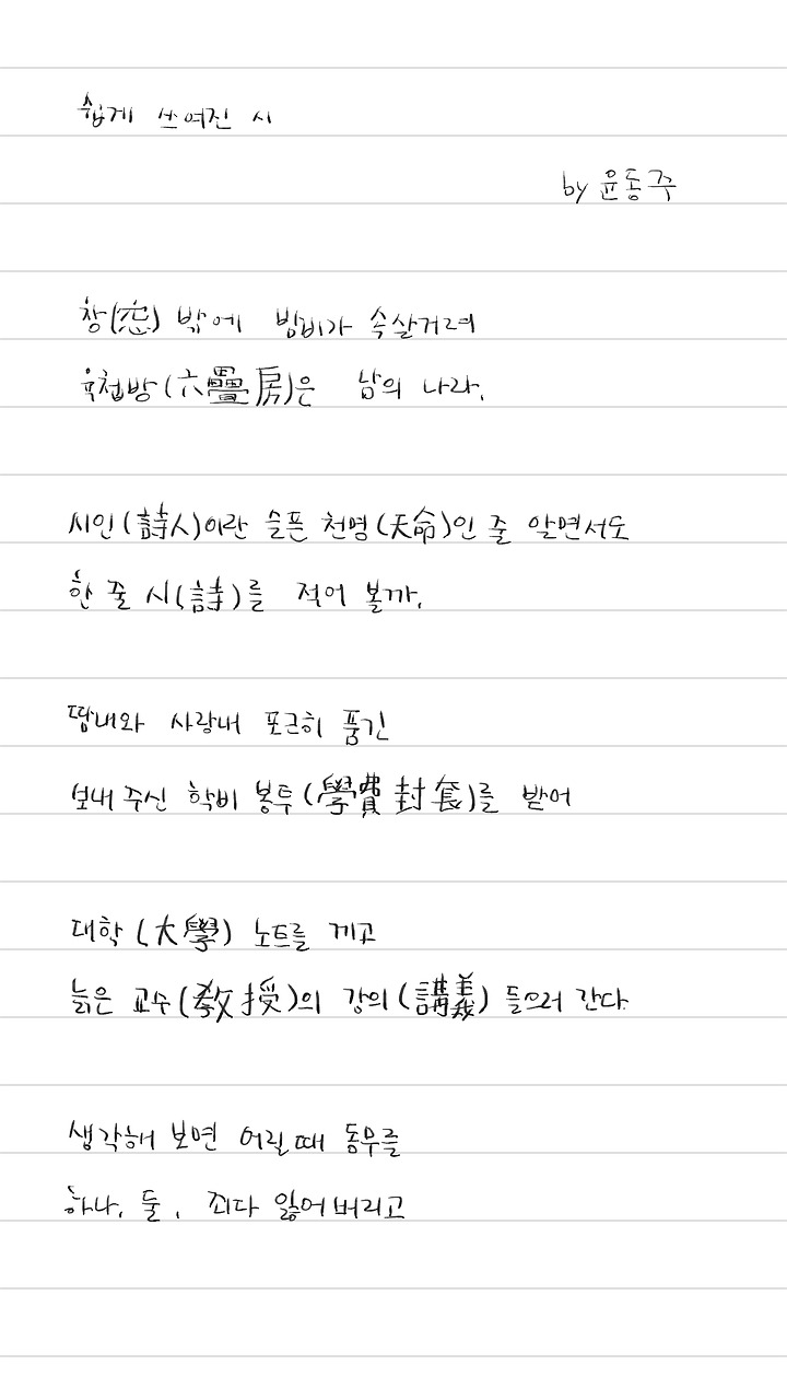 윤동주 쉽게 쓰여진 시 해석 및 풀이 네이버 블로그