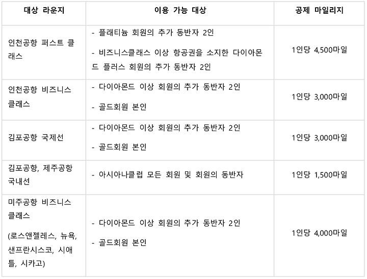 아시아나 마일리지 적립표 구간별 마일리지 클래스별 마일리지