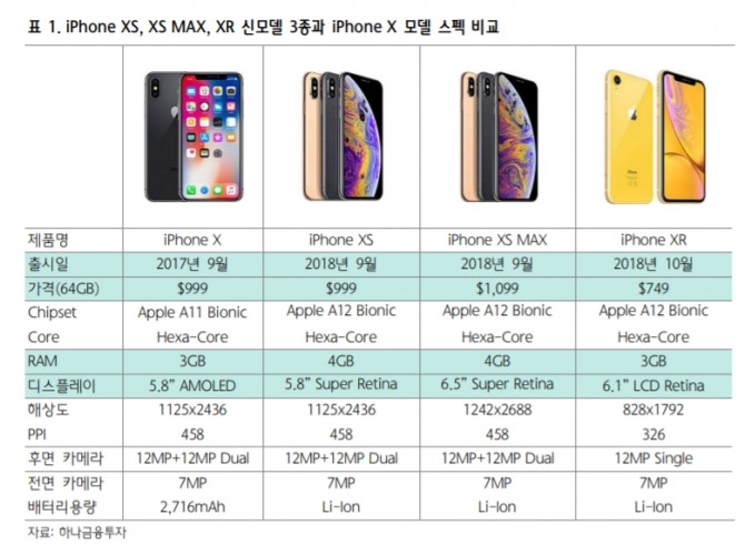 아이폰 구입시 반드시 비교해야 할 아이폰 Xs와 아이폰 Xs Max 아이폰 Xr 주요스펙