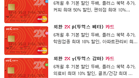 외환카드 2x 알파 베타 감마 혜택 비교 표로 정리