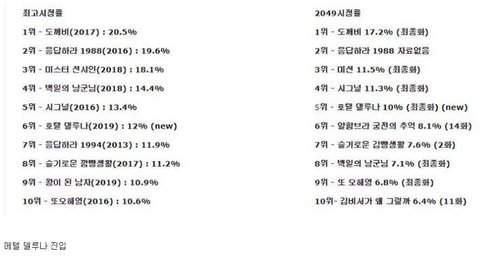 역대 티비엔 드라마 시청률 순위 Jpg Mlbpark