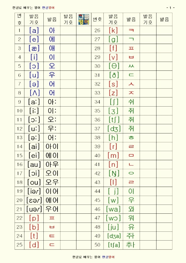 파닉스 발음기호표 영어 알파벳 발음 읽는 법