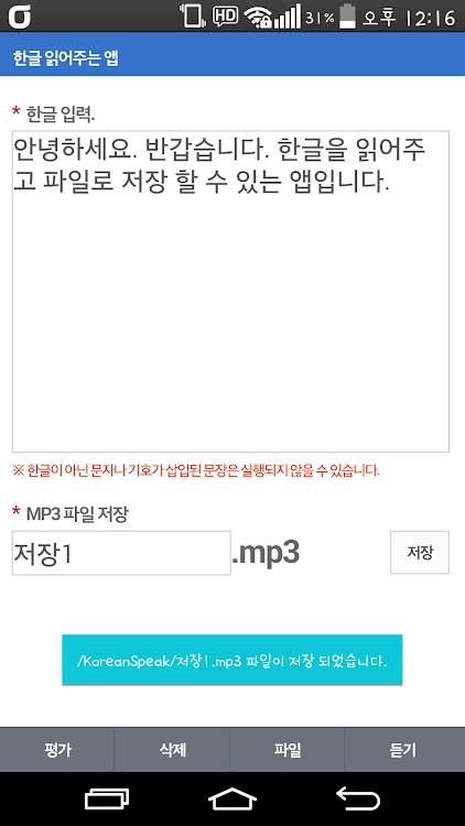 Android용 Mp3 한글 읽어주는 앱 Apk 다운로드
