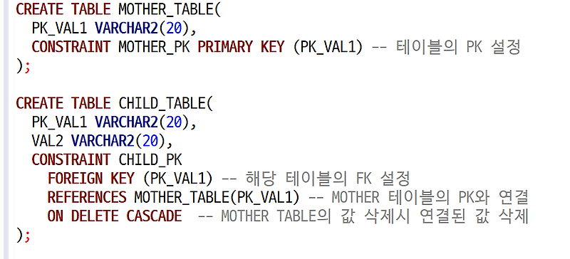 Oracle 오라클 테이블 생성과 Pk Primary Key 설정