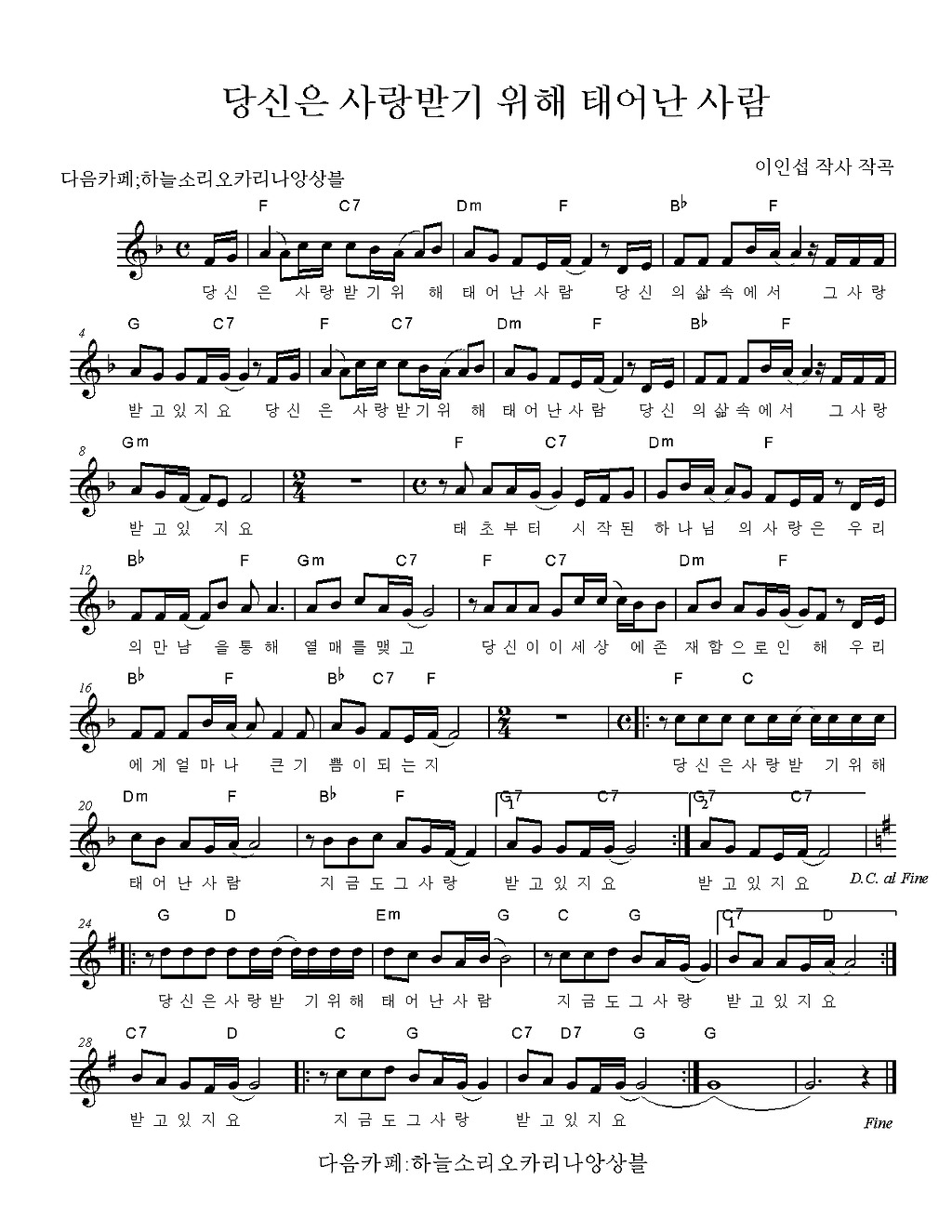 악보 당신은사랑받기위해태어난사람 네이버 블로그