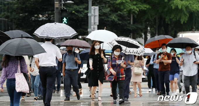 사진 장맛비 내리는 출근길 우산 쓴 시민들