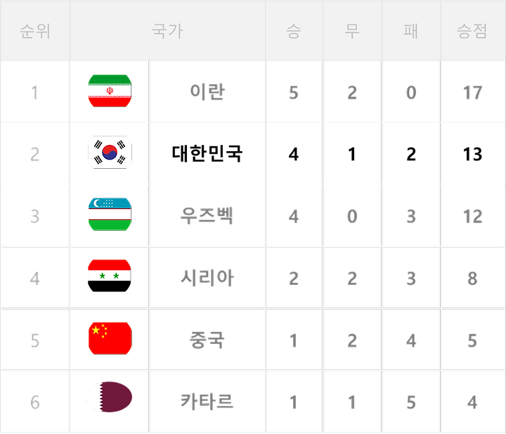 러시아월드컵 아시아지역 최종예선 순위표 1boon