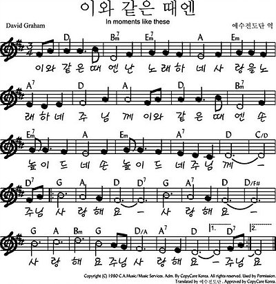 이와같은때엔 악보 영상 가사 In Moments Like These 마커스 D코드
