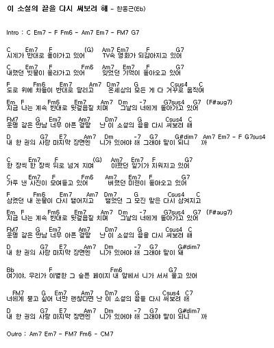 한동근 이 소설의 끝을 다시 써보려 해 기타 코드 악보 Key Of Eb