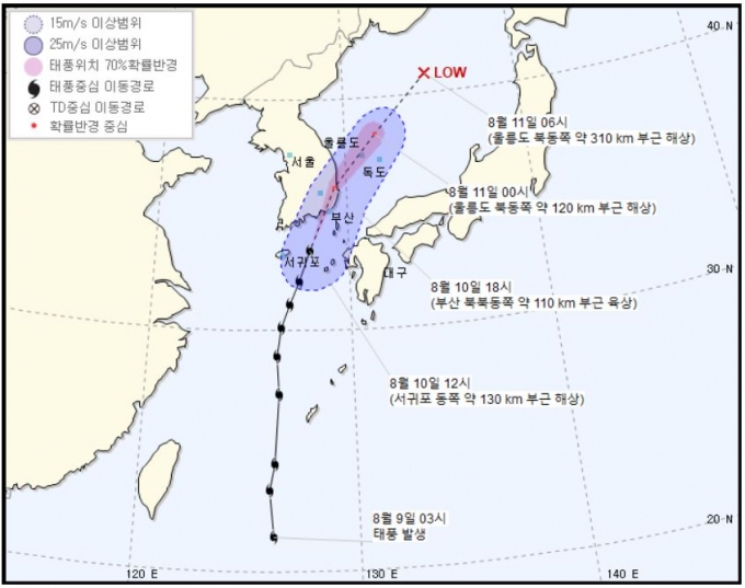 태풍 장미 경로 서귀포 부산 울릉도 지난다