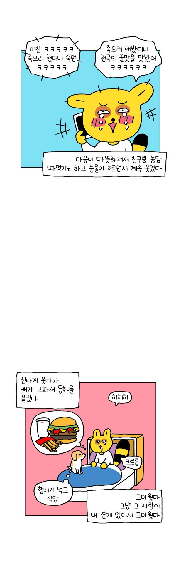 비방 욕설 스포일러성 댓글은 관리자에 의해 사전통보 없이 삭제될 수 있습니다. 최근 우울증을 갖고 있는 사람들에 대한 만화나 tv 등 미디어의 시선은 어떠했다고 생각하시나요. 우울증에서 벗어났다고 생각했는데 어느 날 똑같이 우울증 증상을 겪는 자신의 모습을 보게 된다. 웹툰 즐거우리 우리네 인생 작가 현이씨 마인드프리가 만난 다섯번째 인터뷰이는 웹툰 즐거우리 우리네 인생 의 작가 현이씨 입니다.
