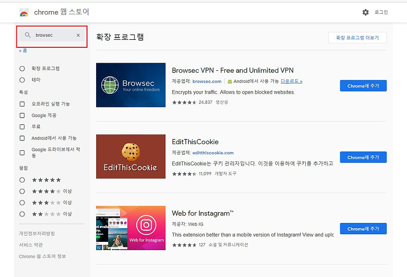 크롬 Chrome 에서 무료 Vpn 이용하기