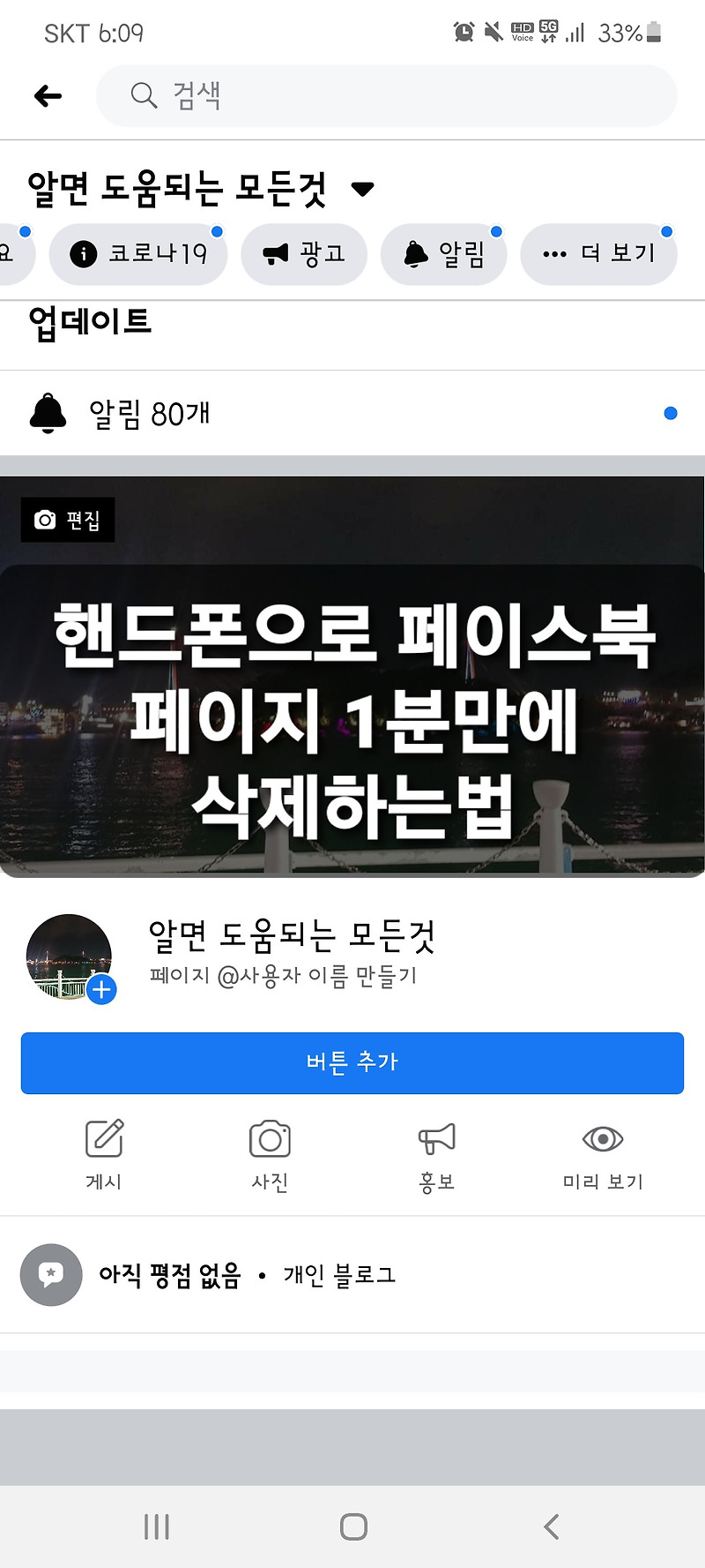 핸드폰 모바일로 페이스북 페이지 30초만에 삭제하는법