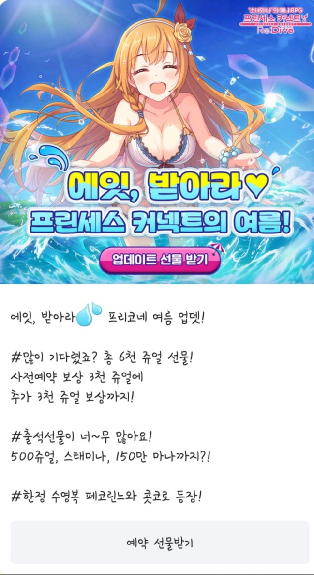 여름 업데이트 사전예약 안내 3 000쥬얼만큼 사랑해 프리코네r 인벤