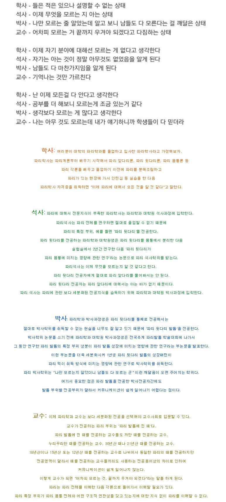 익명의 제보입니다 학사 석사 박사 교수의 차이점 출처 파리학과 과학자 공학자 그리고 프로그래머 Facebook