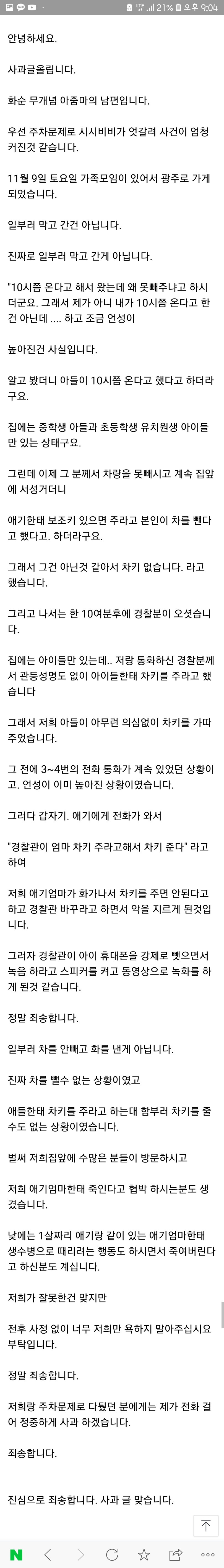 포모스 화순 주차사건 아들이 올린 글 Jpg