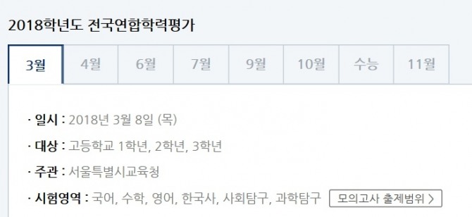 2018년 모의고사 시험일정 3월 6월까지 시험범위 네이버 블로그