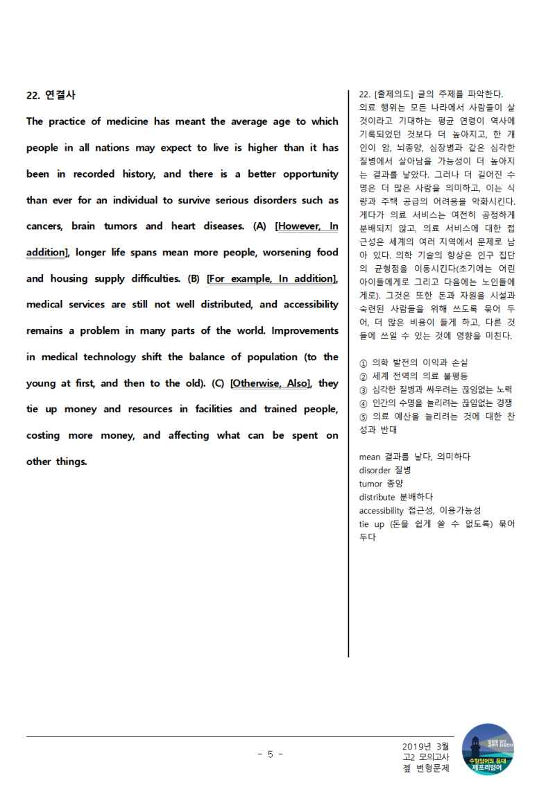 고2 2019년 3월 전국 연합학력평가 모의고사 원문 영어 지문 한줄해석 단어 및 빈칸입니다 필요하신 분들이 계시어 작년에 이어 금년에도 올립니다. 2019년 3월 고2 수업하려고 제작한 변형문제 입니다. 인쇄할때에는 ctrl p 확장 탭에서. 형광펜 누름틀을 체크하면 정답이 보이게 출력되며.