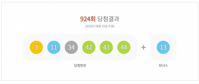 924회 로또 1등 당첨번호 3 11 34 42 43 44 1등 9명 중 8명 배출한 자동선택 명당은 세계일보