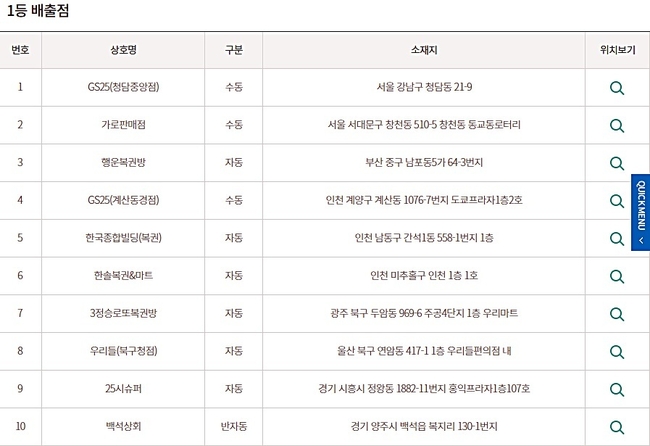 복권당첨번호 로또925회 당첨지역 로또판매점은 Gs서 1등 2명 Cu꺾다 종합