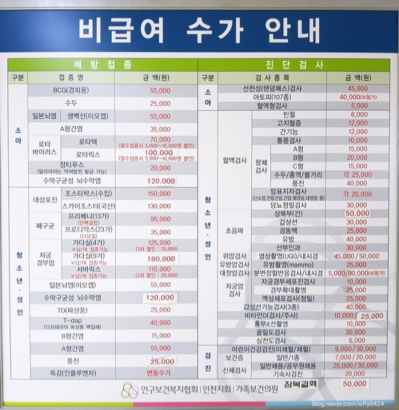 A형간염 예방접종 비용 및 항체 항원 검사비용 가정의학과 네이버 블로그