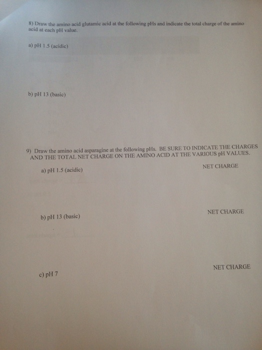 Solved 9 What Is The Charge On Glutamic Acid At The Foll Chegg Com