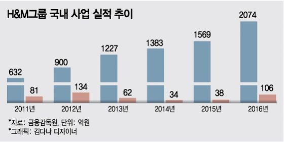 글로벌 Spa 비상 H M 국내 매출 2000억 돌파