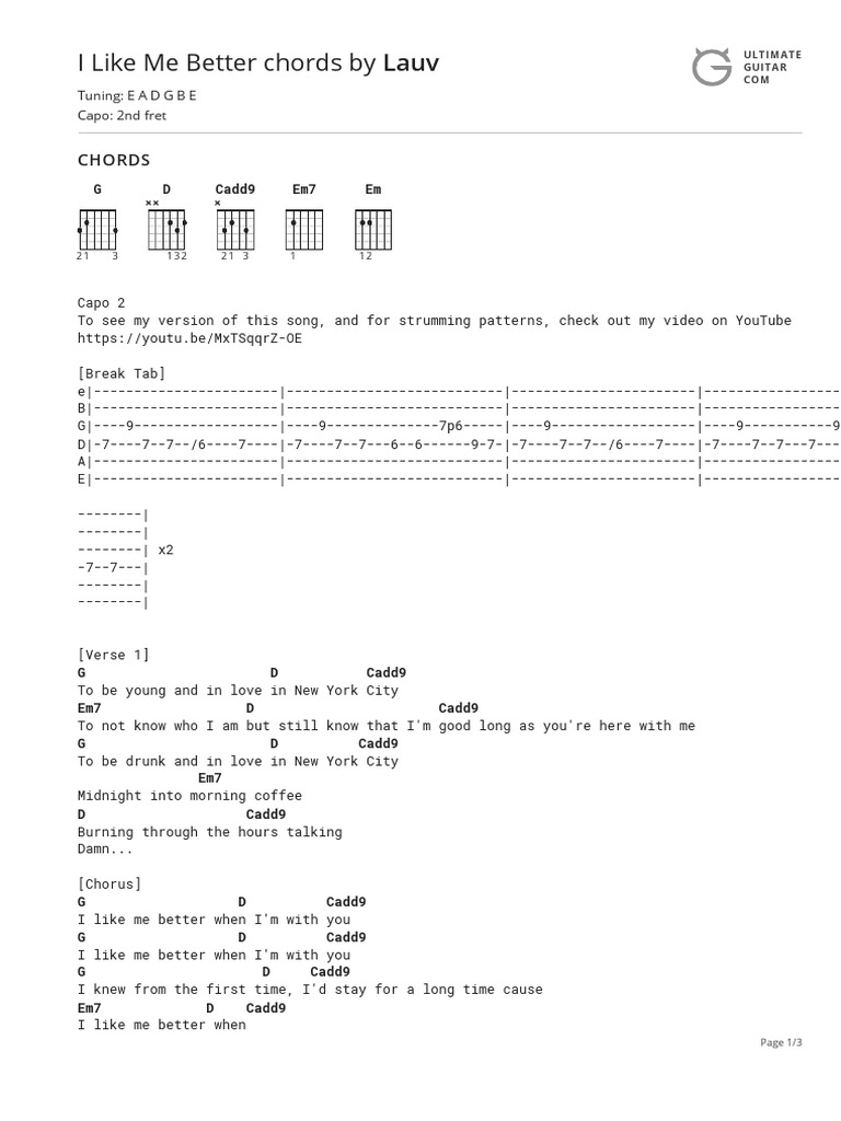 Chord I Like Me Better Ari Staprans Leff Tab Song Lyric Sheet Guitar Ukulele Chords Vip