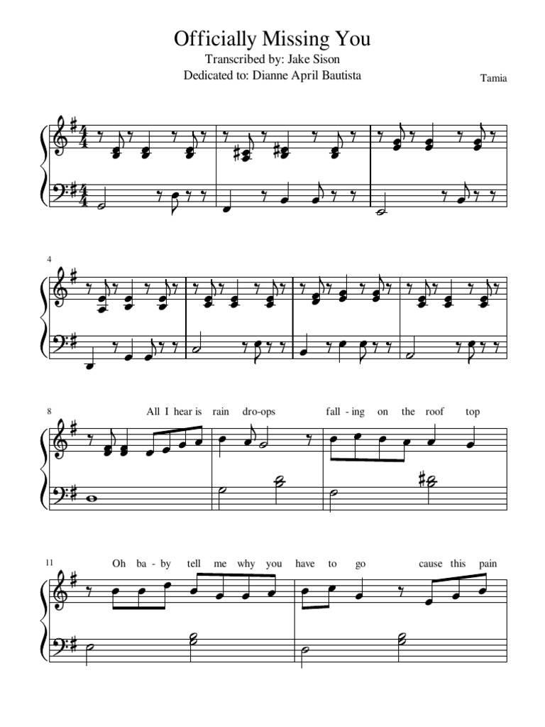 Aldy Santos Officially Missing You Sheet Music Piano Solo In G Major Download Print Sku Mn0171916