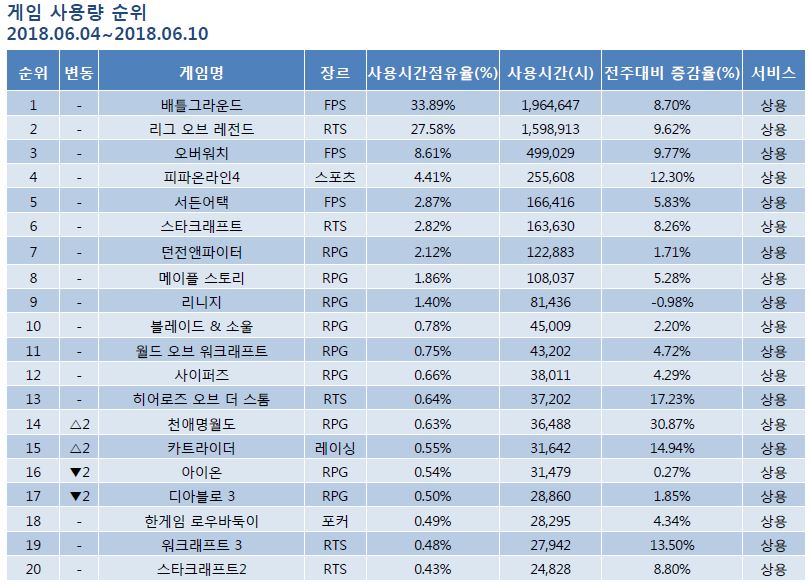 Pc방 점유율 게임 순위 Top50 2020년 6월 4주차 네이버 블로그
